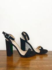 Faux suede sandals w/block heels